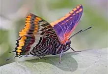 优红蛱蝶:翼展4.5-12厘米。是一种美丽的蝴蝶。色彩鲜艳,花纹相当复杂。前足相当退化,短小无爪。前翅R脉5条,常共柄。卵呈半圆球形。幼虫头上常有突起,体节上有枝刺,腹足趾钩1至3序中列式。蛹为垂蛹。全部>>