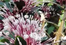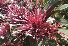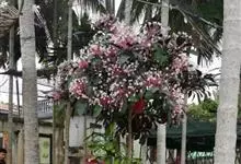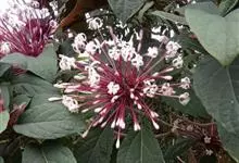 烟火树 Merr.)是唇形科、大青属常绿灌木或小乔木,株高可达4米。幼枝方形,墨绿色。叶对生,长椭圆形或披针形,先端尖,全缘或波状缘。纸质,叶背暗紫红色。聚伞状圆锥花序,顶生,小花多数,聚生成团,…全部>>