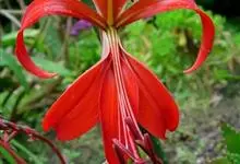 山丹是百合科百合属的多年生草本植物。鳞茎卵形或圆锥形,鳞片长圆形或长卵形,白色;叶散生茎中部,线形,边缘有乳头状突起;花单生或数朵成总状花序,花鲜红色,常无斑点,花被片反卷,…全部>>