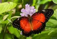 优红蛱蝶:翼展4.5-12厘米。是一种美丽的蝴蝶。色彩鲜艳,花纹相当复杂。前足相当退化,短小无爪。前翅R脉5条,常共柄。卵呈半圆球形。幼虫头上常有突起,体节上有枝刺,腹足趾钩1至3序中列式。蛹为垂蛹。全部>>