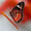 优红蛱蝶:翼展4.5-12厘米。是一种美丽的蝴蝶。色彩鲜艳,花纹相当复杂。前足相当退化,短小无爪。前翅R脉5条,常共柄。卵呈半圆球形。幼虫头上常有突起,体节上有枝刺,腹足趾钩1至3序中列式。蛹为垂蛹。全部>>