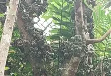 大果榕是桑科榕属的小乔木,株高可达10米;幼枝被柔毛;叶互生,宽卵状心形或近圆形;雄花无梗、匙形、花丝长,雌花生于雌株榕果内,子房白色;榕果簇生于树干基部或老茎短枝上、扁球形或陀螺形,…全部>>