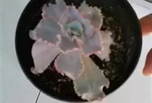 女王花笠,又名扇贝石莲花、女王花舞笠,是景天科拟石莲花属的多肉植物。由美国加利福尼亚州的育种师Dick Wright于1964年培育。特征是呈大波浪状褶皱的红色叶缘和气质高贵的粉紫色调。…全部>>