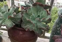 女王花笠,又名扇贝石莲花、女王花舞笠,是景天科拟石莲花属的多肉植物。由美国加利福尼亚州的育种师Dick Wright于1964年培育。特征是呈大波浪状褶皱的红色叶缘和气质高贵的粉紫色调。…全部>>