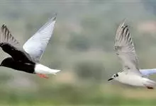白翅浮鸥是鸥科、浮鸥属下的一种小型水鸟。夏羽嘴暗红色,脚红色。头、颈、翕和下体黑色。翼灰色,翼上小覆羽白色,腰、尾亦为白色,飞翔时除尾和翼有部分白色外,通体黑色。冬羽嘴黑色,脚暗红色,头、颈和下体白色,…全部>>