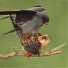 燕隼:是隼科、隼属的鸟类。体长约36厘米,体重140-340克。体形比猎隼、游隼等都小,为小型猛禽,雌鸟比雄鸟稍大;头部和颈后主要为灰黑色,颈后有一乳白色领斑;上体其余部分羽毛灰色,尾部稍淡,…全部>>