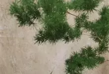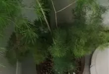 蓬莱松是天门冬科、天门冬属多年生丛生草本植物。宿存,圆柱形肉质根,纵截面为绿色和表面灰色。植株高可达3米。茎呈圆柱形或近四边形,底部木质化,具有灰色或灰褐色。幼嫩的茎在每个节上都被紫绿色鳞片包,…全部>>
