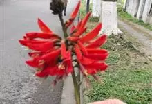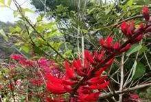 鹦哥花是豆科刺桐属植物,小乔木或乔木。树干和枝条具皮刺。羽状复叶,叶柄平滑,顶生小叶近肾形,侧生小叶斜宽心形,两面无毛。总状花序生于先端叶腋,花鲜红色,大,具花梗,苞片单生,卵形,花萼陀螺形,花冠红…全部>>