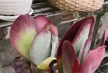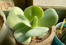 唐印为景天科伽蓝菜属的多年生肉质草本植物。植株中型,株高50厘米,宽20厘米,多分枝;叶片肉质,对生,卵形,全缘,先端钝圆,叶片淡绿色至灰绿色,表面被有厚厚的白粉,光照充足时,叶缘呈红色;圆锥花序,…全部>>