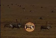 驯鹿,又名角鹿。是鹿科驯鹿属下的唯一一种动物。身长约200厘米,肩高100-120厘米。雌雄皆有角,角的分枝繁复是其外观上的重要特征。长角分枝繁复,有时超过30叉,蹄子宽大,悬蹄发达,尾巴极短。…全部>>