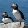 角嘴海雀,是海雀科、角嘴海雀属的中型海鸟,体长32-41厘米,嘴短而粗呈圆锥状、橙色。夏羽上嘴基部有一个三角形的突出物,形状如角。头两侧各有两条由白色丝状饰羽组成的纵带,分别位于眼上和眼下后方的头侧…全部>>