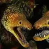 海鳗是鳗鲡目海鳗科海鳗属鱼类。海鳗身体延长,头呈锥状,吻尖而突出,眼椭圆形;躯干部近圆柱状,身体背部及体侧深褐色或银灰色,腹部乳白色;体表无鳞,皮肤光滑;侧线孔明显;背鳍、臀鳍、尾鳍发达并相连,…全部>>