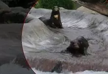 马来熊,是食肉目熊科马来熊属哺乳动物。体胖颈短,眼睛和耳朵小;头部短圆;全身乌黑光滑;鼻唇周为棕黄色,裸露无毛;眼圈为灰褐色,趾基部连有短蹼;胸斑中央有一个毛旋,颈部周围的一圈皮肤极松弛,…全部>>