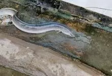 海鳗是鳗鲡目海鳗科海鳗属鱼类。海鳗身体延长,头呈锥状,吻尖而突出,眼椭圆形;躯干部近圆柱状,身体背部及体侧深褐色或银灰色,腹部乳白色;体表无鳞,皮肤光滑;侧线孔明显;背鳍、臀鳍、尾鳍发达并相连,…全部>>