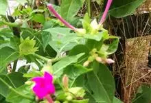即紫茉莉,英文名:Four-o'clock,Marvel of Peru,为紫茉莉科、紫茉莉属多年生草本植物,一年生栽培。株高50~80cm。根粗壮,茎多分枝而散生。叶对生,卵形或心脏形。花数朵簇生…全部>>