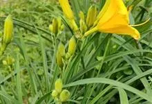 黄花菜 别名金针菜、柠檬萱草等,是阿福花科萱草属的多年生宿根性草本植物。根近肉质,中下部常有纺锤状膨大;叶7~20枚,长50~130cm,宽6~25mm;花葶长短不一,花梗较短,花多朵,…全部>>