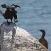 海鸬鹚:俗名乌鹈。典型的海上鸬鹚。体长约70厘米,体羽黑色具光泽。脸红色,与红脸鸬鹚甚似,但繁殖期冠羽较稀疏而松软,脸部红色不及额部但脸颊红色较多,幼鸟及非繁殖期的鸟脸粉灰,体型略小。虹膜蓝色;嘴黄…全部>>