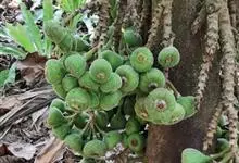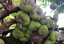 大果榕是桑科榕属的小乔木,株高可达10米;幼枝被柔毛;叶互生,宽卵状心形或近圆形;雄花无梗、匙形、花丝长,雌花生于雌株榕果内,子房白色;榕果簇生于树干基部或老茎短枝上、扁球形或陀螺形,…全部>>