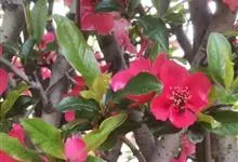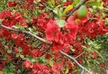 贴梗海棠 Nakai)是蔷薇科、木瓜海棠属植物。落叶灌木,高达2米,枝条直立开展,有刺。叶片卵形至椭圆形,稀长椭圆形,长3-9厘米,宽1.5-5厘米。花先叶开放,3-5朵簇生于二年生老枝上。…全部>>