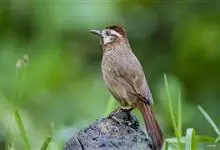 白颊噪鹛是雀形目噪鹛科噪鹛属鸟类,又称土画眉、小画眉、小噪鹃。成鸟额至头顶栗褐色,长眉纹、眼先和颊纹棕白色,眼后至耳羽深褐色,…全部>>