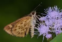 姜弄蝶 Udaspes folus ,又叫银斑姜蝶。幼虫吐丝粘叶成苞,隐藏其中取食,受害叶呈缺刻或在1/3处断落,…全部>>