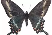 绿带翠凤蝶,又名深山凤蝶,为凤蝶科凤蝶属下的一种。分布于韩国、日本、中国台湾、中国大陆等地。翅黑色,满布金绿色鳞片。前翅亚缘具黄绿色横带纹。后翅外缘有6个略呈新月形的红斑,…全部>>