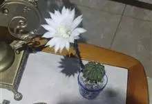 仙人球花 仙人掌科,仙人球属。植株单生或成丛。幼株球形,老株长成圆筒状,高可达75厘米,直径12-15厘米。球体暗绿色,具棱11-12。刺锥状,黑色,长1-1.5厘米。花着生于球体侧方,大型嗽喇叭状…全部>>