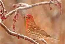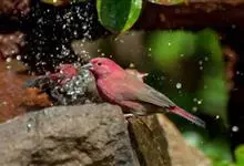 酒红朱雀小型鸟类,体长13~15厘米。雄鸟通体深红色,头部深朱红或棕红色,下背和腰玫瑰红色,眉纹粉红色而具丝绢光泽。两翅和尾黑褐或灰褐色、具暗红色狭缘,内侧两枚三级飞羽具淡粉红色先端。…全部>>