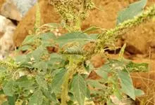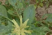反枝苋是苋科苋属的一年生草本植物。株高达1米;茎密被柔毛;叶菱状卵形或椭圆状卵形,先端锐尖或尖凹,两面及边缘被柔毛,下面毛较密;穗状圆锥花序,顶生花穗较侧生者长;花被片长圆形或长圆状倒卵形,…全部>>