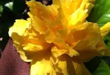 重瓣朱槿是锦葵科、木槿属常绿灌木植物;小枝疏被星状柔毛单叶互生,卵形或卵状披针形,基部圆形;叶柄长;托叶早落;花重瓣,较朱槿为大;花萼小,钟形,基部具有苞片多枚;花瓣多枚排列成彩球状,…全部>>