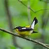 白眉姬鹟是小型鸟类,体长11-14厘米。雄鸟上体大部黑色,眉纹白色,在黑色的头上极为醒目。腰鲜黄色,两翅和尾黑色,翅上具白斑。下体鲜黄色。雌鸟上体大部橄榄绿色。腰鲜黄色,翅上亦具白斑。下体淡黄绿色。…全部>>