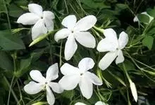 素馨花,木犀科素馨属多年生的攀援灌木植物。攀援灌木,小枝圆柱形,具棱或沟;叶对生,叶轴常具窄翼,小叶片卵形或长卵形;聚伞花序顶生或腋生,花序梗长,苞片线形,花萼无毛,裂片锥状线形,花冠白色,…全部>>