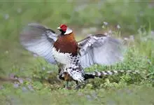 雉鸡:鸟纲、雉科、雉属的一种走禽,共有30个亚种。体形较家鸡略小,但尾巴却长得多。雄鸟和雌鸟羽色不同,雄鸟羽色华丽,多具金属反光,头顶两侧各具有一束能耸立起而羽端呈方形的耳羽簇,…全部>>