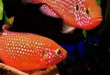 红宝石鱼是鲈行目慈鲷科伴丽鱼属 鱼类,又名红花鲈、宝石鱼。个体较大,身长12—15厘米。背鳍宽大,基部长。体色从下颌至尾鳍,侧线以下均为赤红色,背鳍、臀鳍和尾鳍边缘也为红色,…全部>>