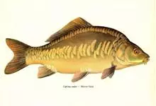 镜鲤是鲤形目鲤科鲤属鱼类。体形较粗壮,侧扁,头后背部隆起;头较小,眼较大;有颌须2对;鳃耙短小,呈三角形适中排列;尾鳍叉形;体表鳞片较大,沿边缘排列,背鳍前端至头部有一行完整的鳞片,…全部>>