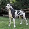 大丹犬原产于德国,历史上曾用做猎犬、护卫犬、斗犬、使役犬等,因其性格温顺、外貌优美,现今的发展方向主要是家庭用犬。该品种外貌高大、优美,体高与体长相当。公犬体高在76cm以上,母犬体高在71cm以上,…全部>>