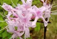 溪畔杜鹃:常绿灌木,高可达3米;幼枝纤细,叶纸质,上面深绿色,下面淡黄褐色,叶脉在上面凹陷,下面凸出,花芽圆锥状卵形,伞形花序顶生,有花多达10朵以上;花梗密被短腺头毛及扁平长糙伏毛;花萼裂片狭三角…全部>>