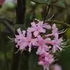 溪畔杜鹃:常绿灌木,高可达3米;幼枝纤细,叶纸质,上面深绿色,下面淡黄褐色,叶脉在上面凹陷,下面凸出,花芽圆锥状卵形,伞形花序顶生,有花多达10朵以上;花梗密被短腺头毛及扁平长糙伏毛;花萼裂片狭三角…全部>>