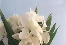 姜花又名野姜花。是姜科姜花属的多年生草本植物,茎高1-2米;叶片长圆状披针形或披针形,叶面光滑,叶背被短柔毛;穗状花序顶生,椭圆形,花芬芳,白色;蒴果卵状三棱形,微黄绿色;种子鲜红色,具橘红色的假种皮。…全部>>