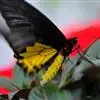 金裳凤蝶是凤蝶科、裳凤蝶属的动物。金裳凤蝶身体呈黑色,头、颈和胸侧有红毛,腹部有黑黄两色相间条纹,雄蝶前翅黑色,具黑天鹅绒光泽,各脉两侧灰白色,后翅金黄色,各室外缘有等腰三角形黑斑1枚,斑内侧有晕,…全部>>