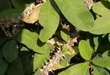 虎刺梅:别称铁海棠,是蔓生灌木植物。茎多分枝,长60-100厘米,直径5-10毫米,具纵棱,密生硬而尖的锥状刺,刺长1-1.5厘米,直径0.5-1.0 毫米,常呈3-5列排列于棱脊上,呈旋转。叶互生…全部>>