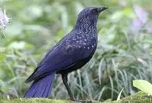 紫啸鸫是雀形目鹟科啸鸫属鸟类,又称黑雀儿,山鸣鸡、乌精。成鸟眼先及颏绒黑色;前额、头顶至背及肩羽和颈侧呈深紫蓝色,羽端具较密集的亮蓝色点斑;腰至尾上覆羽的深紫蓝色较暗而杂黑褐色,…全部>>