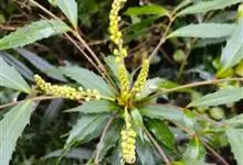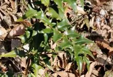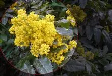 十大功劳 Fedde),小檗科十大功劳属常绿灌木植物。叶子较大且较多,呈椭圆形,绿色,表面光滑无毛,叶柄较长;花朵较小,呈多边形,黄色,花瓣对称分布,表面有绒毛;果实呈圆形,褐色,…全部>>