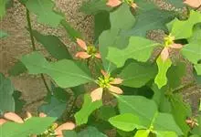 猩猩草:常绿或半常绿灌木,盆栽时株高0.5米-2米,在亚热带地区可长到6米以上。茎直立而光滑,单叶互生,卵状椭圆形至阔披针形,具不规则的深缺刻。长10-15厘米。花小,有蜜腺,排列成密集的伞房花序。…全部>>
