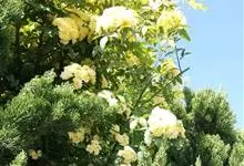 黄木香花 Rehd.)是蔷薇科、蔷薇属植物,为木香花的变型品种,攀缘小灌木,高可达6米。小叶3-5枚,稀7枚,小叶片椭圆形或长圆状披针形,先端急尖或稍钝,基部近圆形或宽楔形,边缘有紧贴细锯齿。花小型,…全部>>
