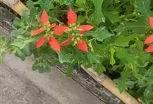 猩猩草:常绿或半常绿灌木,盆栽时株高0.5米-2米,在亚热带地区可长到6米以上。茎直立而光滑,单叶互生,卵状椭圆形至阔披针形,具不规则的深缺刻。长10-15厘米。花小,有蜜腺,排列成密集的伞房花序。…全部>>