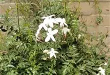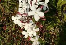 素馨花,木犀科素馨属多年生的攀援灌木植物。攀援灌木,小枝圆柱形,具棱或沟;叶对生,叶轴常具窄翼,小叶片卵形或长卵形;聚伞花序顶生或腋生,花序梗长,苞片线形,花萼无毛,裂片锥状线形,花冠白色,…全部>>