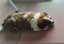 圣伯纳犬,别名巴里汉德,属于大型工作犬,肩高约65~90厘米,体重约50~90千克。圣伯纳犬身体强壮,被毛红褐色和白色相间,头圆而宽大。颈部强壮,胸宽深,背直。前肢长直,腕关节略前倾,后肢腿骨粗壮,…全部>>