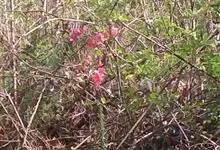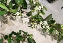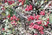 火棘 H. L. Li)是蔷薇科火棘属常绿灌木,老枝呈暗褐色;叶片呈倒卵形,边缘有钝锯齿,齿尖向内弯,两面皆无毛;叶柄短,无毛或嫩时有柔毛;花序是复伞房状,花瓣呈白色近圆形;果球近圆形,…全部>>