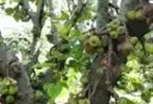大果榕是桑科榕属的小乔木,株高可达10米;幼枝被柔毛;叶互生,宽卵状心形或近圆形;雄花无梗、匙形、花丝长,雌花生于雌株榕果内,子房白色;榕果簇生于树干基部或老茎短枝上、扁球形或陀螺形,…全部>>